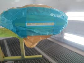 乾燥後、PORSCHEロゴをブラックで塗装します。 |