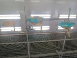 専用の台にセッティングして、耐熱塗料の黄色を塗装したところです。 |