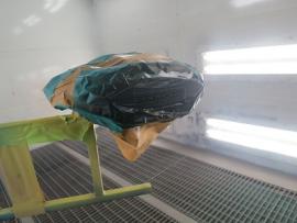 隅々までサンディングと清掃を繰り返し、サーフェーサーを塗装し上塗りの工程に移ります。 |