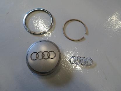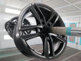 センターキャップはメッキ部分を分解して残します。その他の部分はホイールと同じ艶になるように塗装致しました。 |