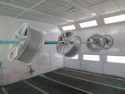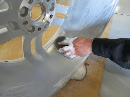 まず、車両からホイールを取り外し、タイヤも脱着して作業致します。 |