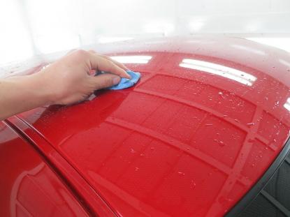 ルーフラッピング施工前にボディ表面の汚れや鉄粉を取り除きます。 |