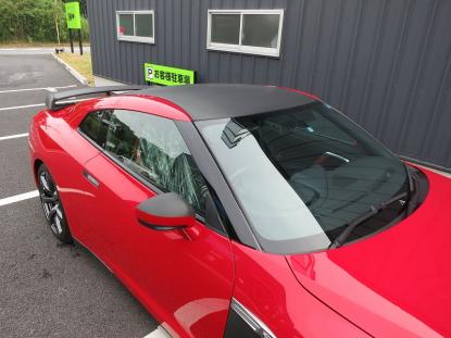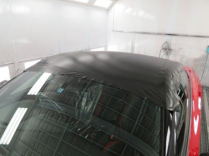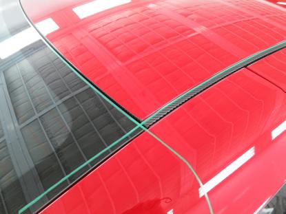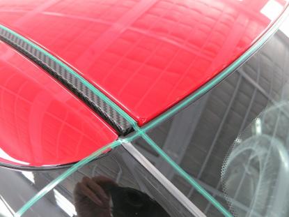 ルーフモールやフロントガラスの境目の細かい場所を最初に施工します。 |