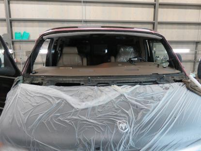 ルーフの修理です。よく見ると、塗装面の不具合はもちろんですがへこみも沢山ありましたので板金修理をしました。 |