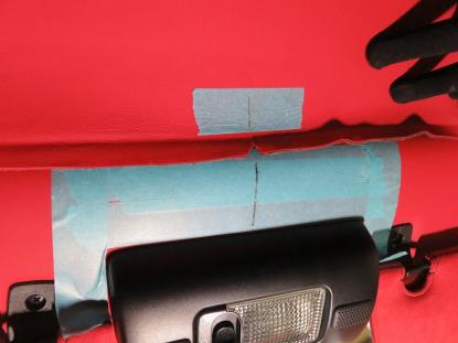 接着する前にヘッドライングの仮合わせをします。 |