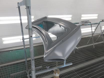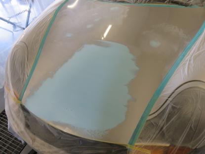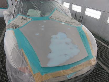 ボンネットも同様に2液型サフェーサーの塗装をします。 |