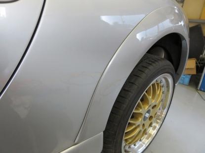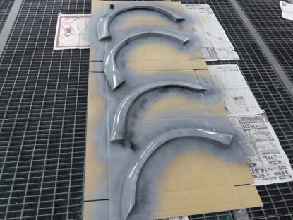 オーバーフェンダーはひずみを取るためにパテを塗って平らに仕上げていきます。 |