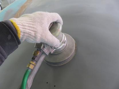 ダブルアクションサンダーで傷を削り取っていきます。 |
