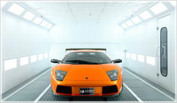 近年は国内の板金塗装工場などでも導入されるようになった最新の高性能ブースです。