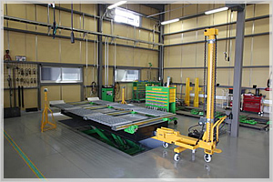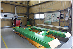 イタリア グローバルインターナショナル(GLOBAL・INTERNATIONAL)社のものを2台導入。このシステムは、メーカーのボディ寸法図をもとにジグ(フレーム位置を固定するもの)を
