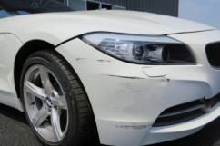 | 自宅車庫を出るときに右前をうっかり擦ってしまったBMW Z4の修理事例です。 |