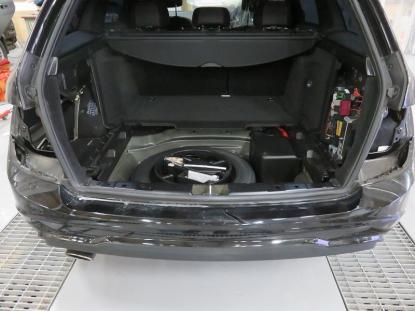 ガソリンスタンドで洗車をし終えたところ、誤ってバックで洗車機にぶつけてしまったお車の修理事例です。修理作業はリヤバンパー交換とバックドア板金修理となりました。 |