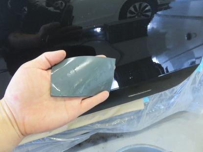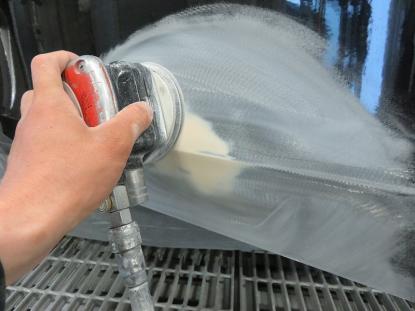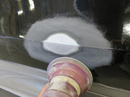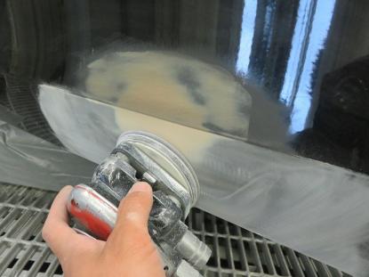 ダブルアクションサンダーで塗装面の段差を平らに削り、脱脂を行ってからパテを塗る準備をします。 |