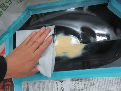 最後に、800番のペーパーを使い水研ぎで仕上げます。 |