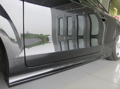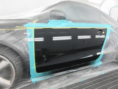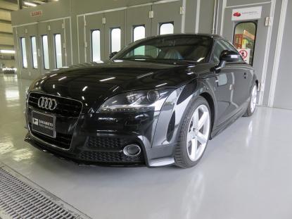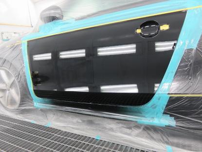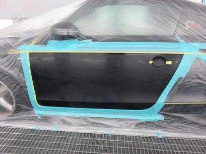 調色作業の後、ゴミやほこりがシャットアウトされた塗装ブースの中にアウディTTを入れマスキングをしたら塗装前の準備が完了です。 |