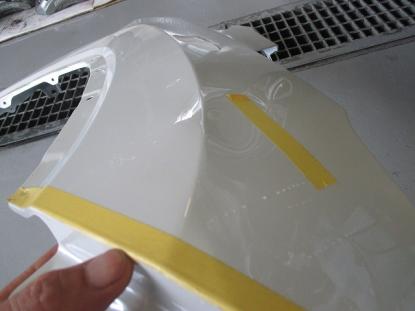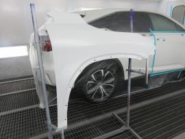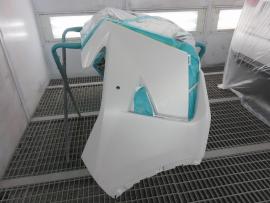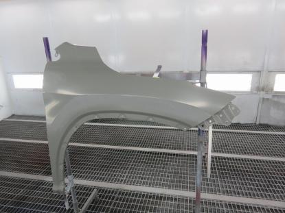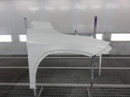 新品のフロントフェンダーに2液型のカラーサフェーサーを塗装します。 |