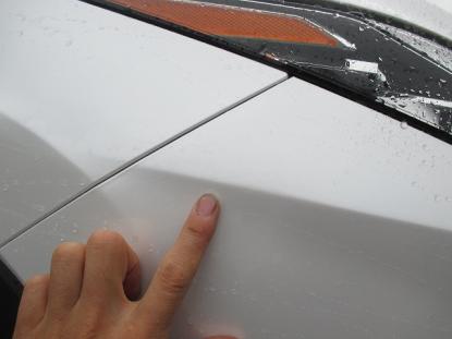 ご覧のようにフロントフェンダーは歪みが大きいため交換致しました。 |