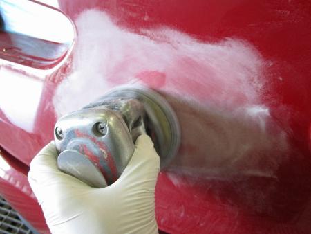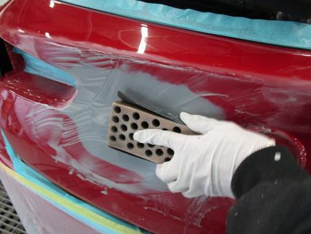 キズをダブルアクションサンダーで削り落としていきます。 |
