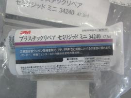 2液型のバンパー専用接着剤を裏表同時に塗っていきます。 |
