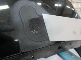 乾燥後、荒削りを行った後、バンパー専用のパテで表面を平滑に仕上げます。 |