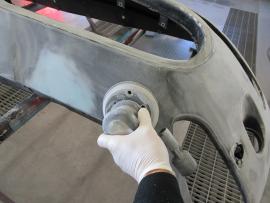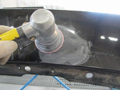 続いて表面の修理です。表面をダブルアクションサンダーでサンディングします。 |