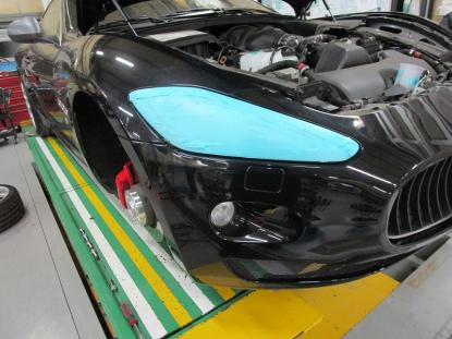 マセラティ グラントゥーリズモのオリジナルの塗装肌を再現させ塗装が終わりました。 |