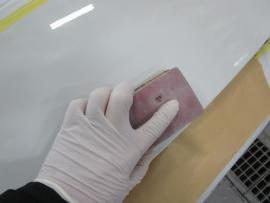 まず、汚れが付かないようマスキングしてから傷の修理に取り掛かります。 |