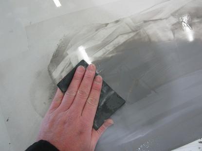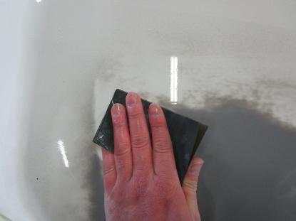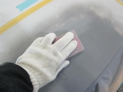 その後、800番のペーパーで水研ぎを行ってボンネット全面の下地を仕上げていきます。 |