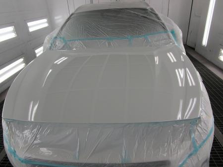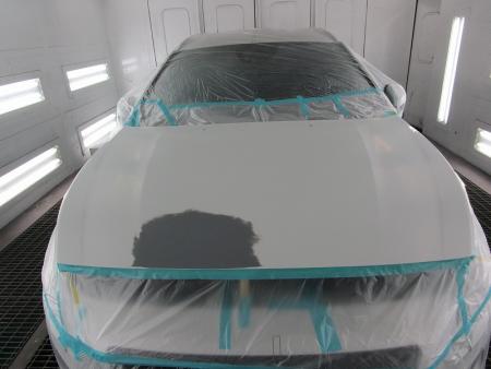 ゴミやほこりがシャットアウトされた塗装ブースの中にボルボV60を入れ、マスキングをしたら塗装前の準備が完了です。 |