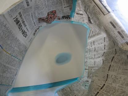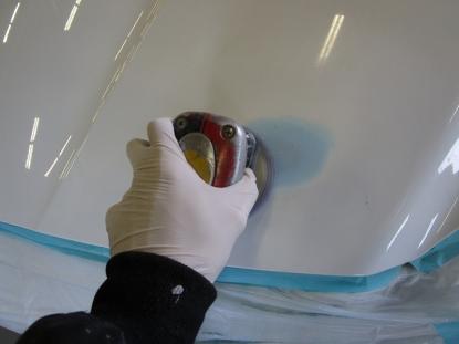 240番のペーパーで傷を削り取り、塗装面の段差をパテで平滑に仕上げていきます。 |