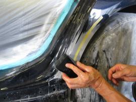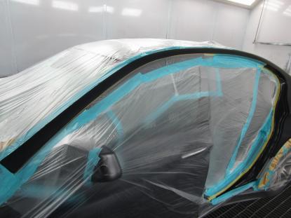調色を行った後、塗装ブースでマスキング作業し塗装前の準備が完了です。 |