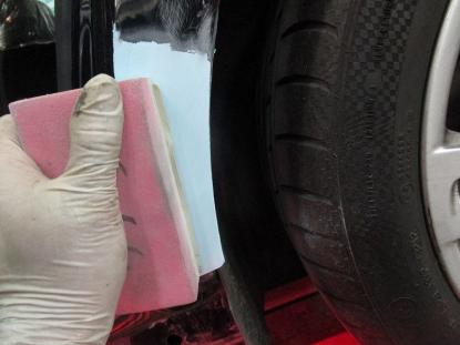 引き出し作業が終わるとパテを塗ります。 |