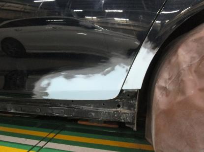 立体駐車場から出る際に、誤って左側面をぶつけてしまったお車の修理事例です。 |