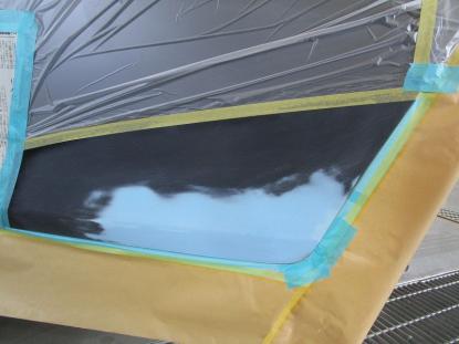 フラッシュオフタイムをとりながら2液型のカラーサフェーサーを塗り重ねていきます。 |