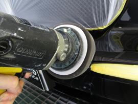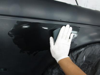 1500番のペーパーで水研ぎした後、洗剤をつけたスコッチブライトで下地を仕上げていきます。 |