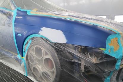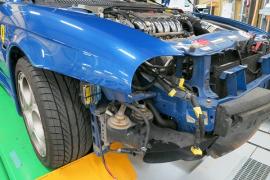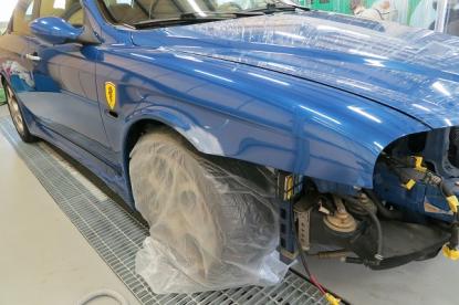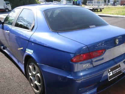 今回はめずらしく?赤(ロッソ)ではなく鮮やかなブルーパールのGTAの修理事例です。専用のエアロやマフラーといった外観からしてノーマルの156とは違い、とても迫力のある車両であり新車発売して時間が経っているにも関わらず根強い人気がある車両です。 |