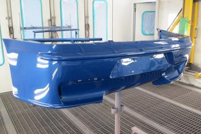 前後のバンパもオリジナルの専用台にきっちり固定して塗装することによって変形せずに、きれいに塗装できます。 |