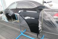 ボンネット・左フロントフェンダは新品に交換しましたのでサフェーサー塗装後、水磨ぎした後、ゴミやほこりを極力減らす為ボディには取付けず単品で塗装します。 |