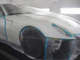 ビアンコと呼ばれる白です。きれいな2コートソリッドの塗装で、イタリア製高級塗装ブースの中でフェラーリ特有のオリジナル肌を再現致しました。 |