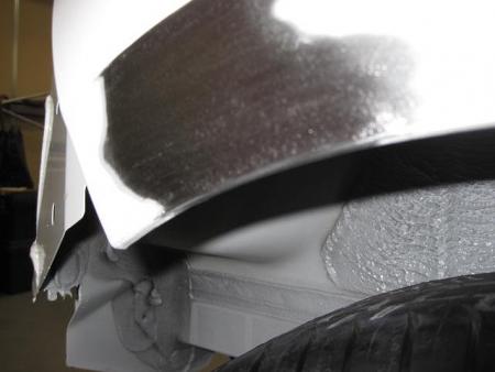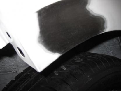 まず、外せる部品はすべて取り外し、リヤフェンダーの損傷を確認します。 |