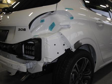 その後塗装ブースにプジョー208を入れてマスキング作業を行います。 |
