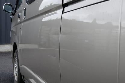 左スライドドアと左リアフェンダーを柱にぶつけてしまい、ダメージを受けてしまったお車です。車両保険を使って修理する予定でしたが、最近改定された自動車保険料率改正(事故有り係数の導入)により車両保険使用後3年間の保険料増額のお支払いを考えますと、今回は車両保険を使わず修理したほうがいいと判断し、自費で修理致しました。 |