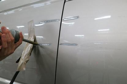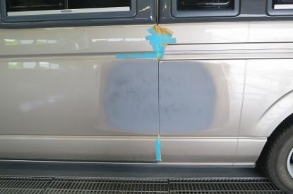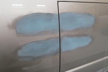 元の高さまで引き出したら鈑金が完了です。脱脂後、パテを薄く平らにつけます。 |