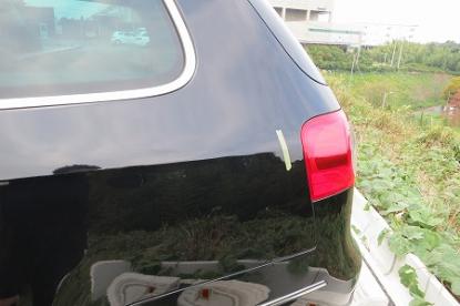 台風による強風で、何か分からない飛来物によりボディ全体に傷やへこみが付いてしまったお車です。損傷範囲が広い為、車両保険を使って修理致しました。 |