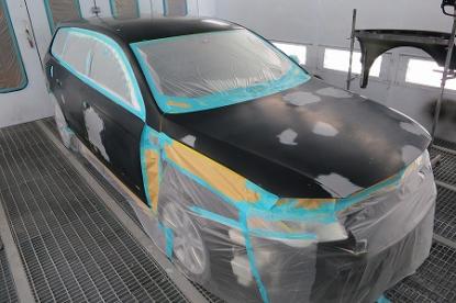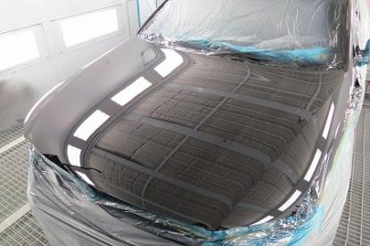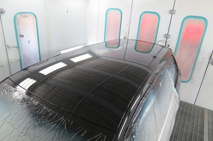 短波と呼ばれる赤外線乾燥機で60℃×20分強制乾燥させてから、ガイドコートをして800番の耐水ペーパーでサンディングします。 |
