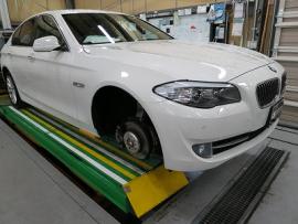 今回は追加作業でBMW定番の3Dデザインのフロントリップスポイラーの取付塗装もご用命頂きましたので、フィッティングします。 |