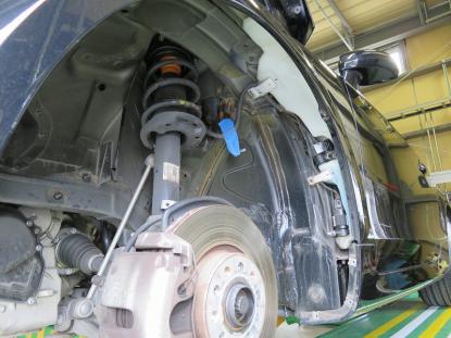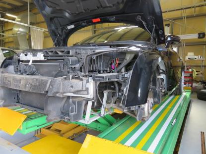 フロントバンパーからヘッドライトやフェンダーライナーを取り外していきます。 |
