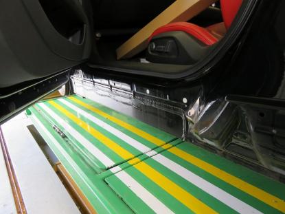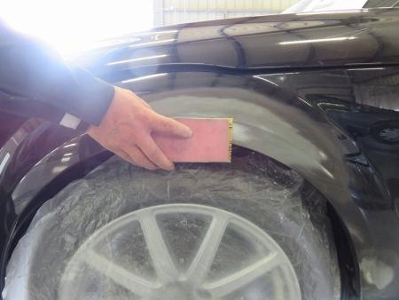 ほとんどヘコミはありませんでしたので、摺りあわせと呼ばれるサンディングをしてから薄くパテを塗って平らに仕上げます。ここで板金作業が完了です。 |