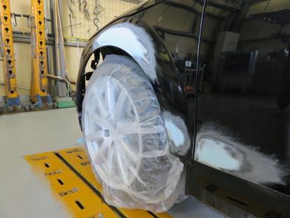 駐車場に停めていた間に、当て逃げ被害に遭われてしまい、加害者が見つからなかった為仕方なく自費で修理することになったお車の修理事例です。損傷箇所は左Frフェンダー・左Frドアと左Frホイールになります。 |