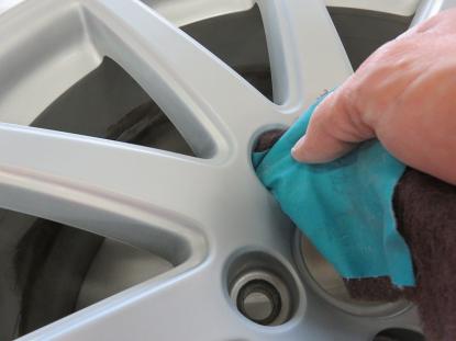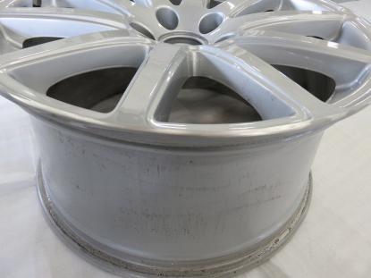 続いてホイールの修理です。リムに付いたガリ傷は、サンディングして平らに仕上げます。 |